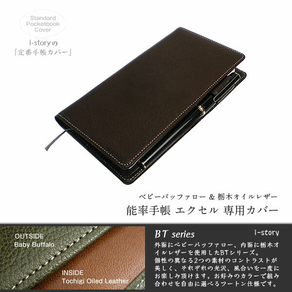 能率手帳エクセル専用カバー【ベビーバッファロー&栃木オイルレザー】【レザー・本革カバー】【送料無料!】